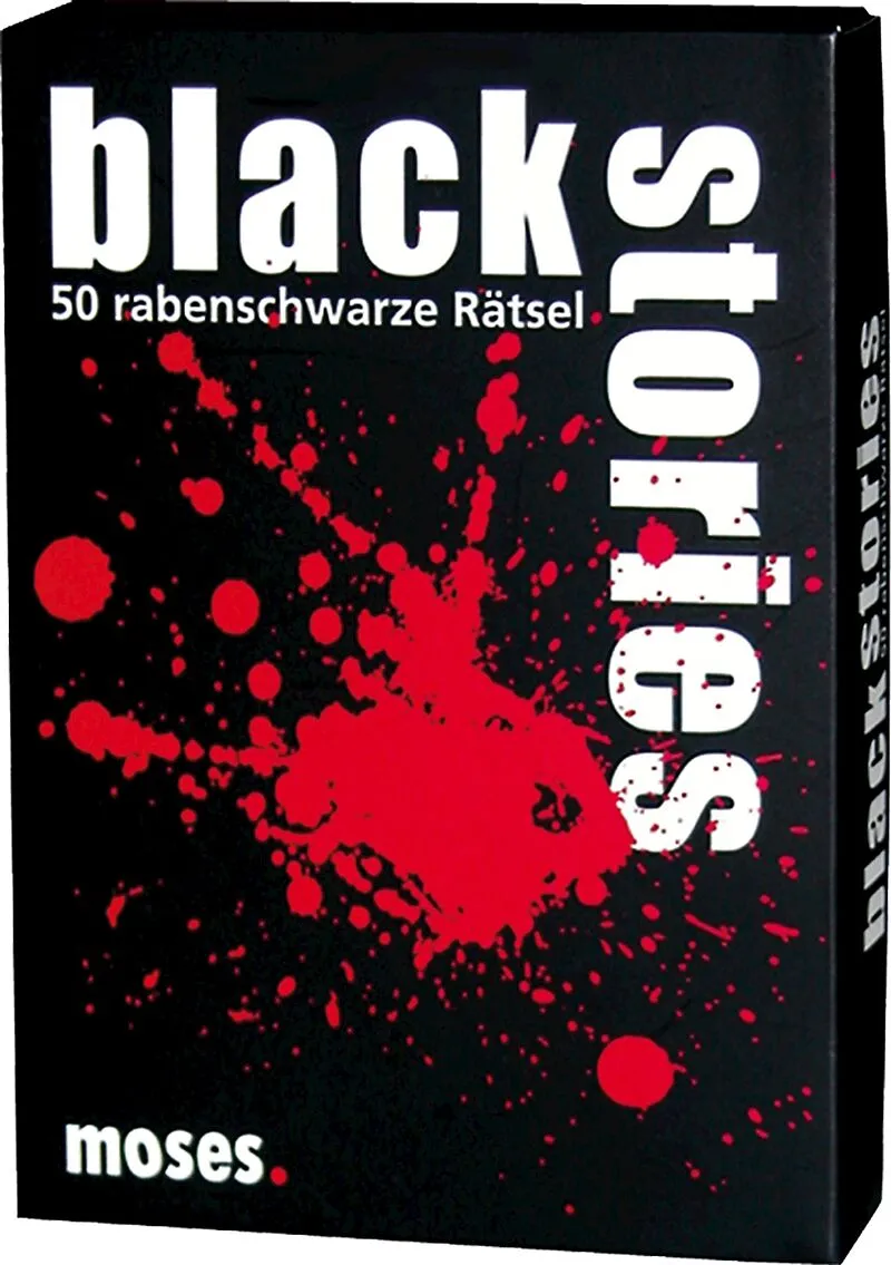 black stories 1 Sie sind schwarz, rätselhaft und durch und durch böse: black stories - Das ist DIE Kultreihe bei moses. und das schon seit über 10 Jahren! In den morbiden, gruseligen, erschreckenden und zum Teil unterhaltsamen Rätseln geht es um den Tod und Un...