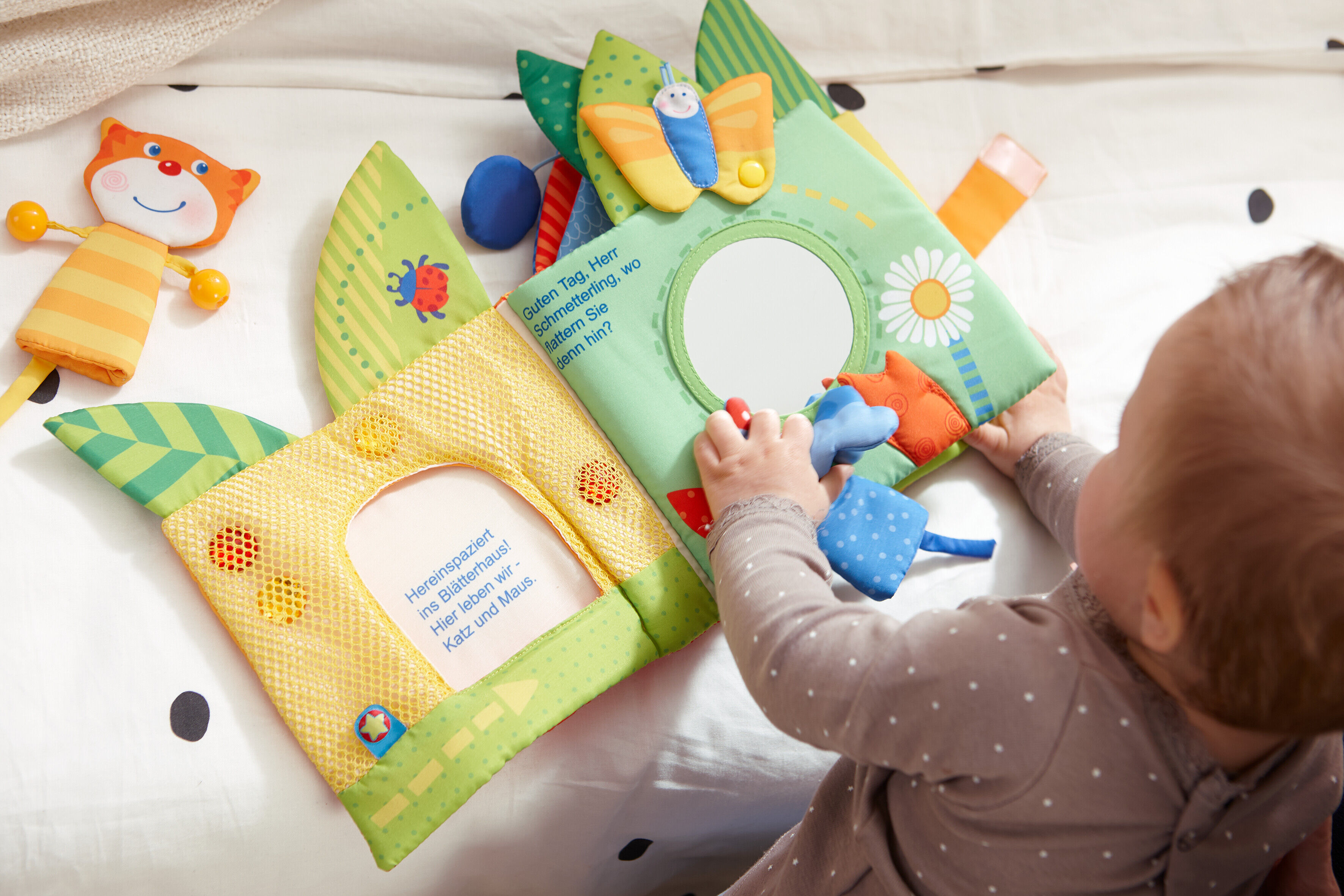 Viel Beschäftigung für Augen und Hände bietet das Blätterhäuschen von HABA. Das farbenfrohe Stoffspielzeug ist angenehm weich und animiert zum Vorlesen, Entdecken und (Be-)Greifen. Die Stofffiguren Katze und Maus lassen sich mit den Fingern zum Leben erwecken....