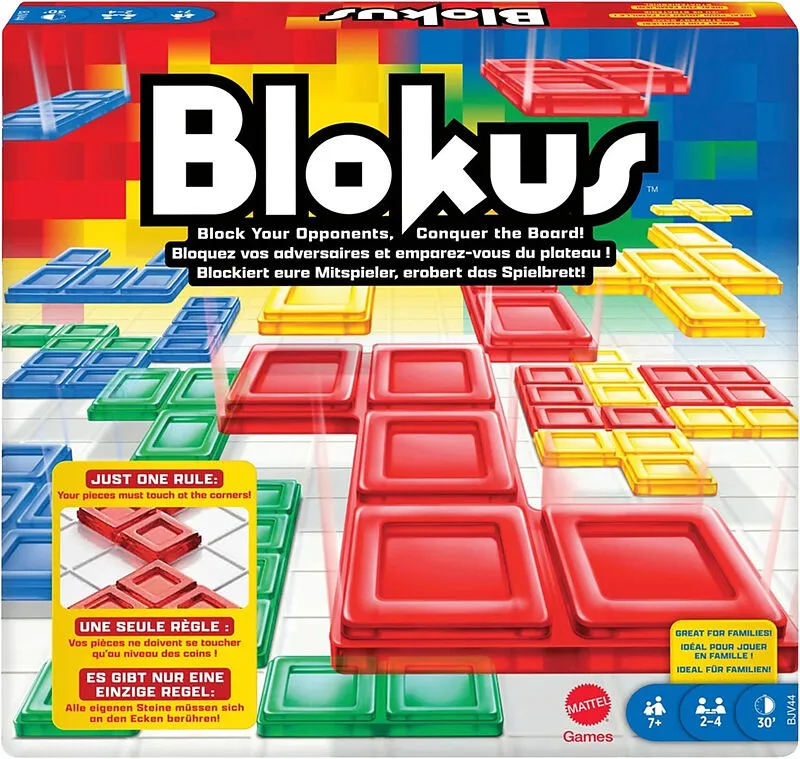 Mattel Blokus Neuauflage Blokus - das Strategiespiel für die ganze Familie! Leicht verständlich für Anfänger, eine echte Herausforderung für Profis. Mit unzähligen Spielkombinationen. Jeder Spieler wählt eine Farbe und muss die Steine dieser Farbe von den Ecke...