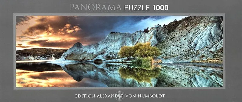 Der Blue Lake ist nur ein kleiner See in Neuseelands Alpen, hat aber das klarste Süsswasser der Welt. Eine optimale Spiegelfläche für die spektakuläre Landschaft dort! Gelegte Grösse: 94.5x32.6 cm.