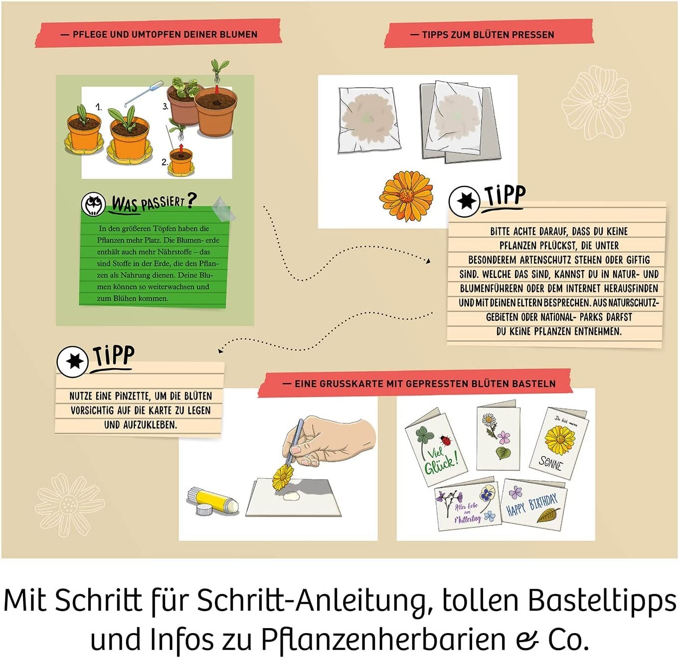 Wunderschöne Blumen selbst züchten, sammeln und haltbar machen: Kinder zwischen 6 und 12 Jahren pressen Blüten, Blätter und kleine Pflanzen und erforschen sie. - Die Blütenpresse zum Mitnehmen: handlich, aus FSC-zertifiziertem Holz und 9x9 cm groß ist sie perf...