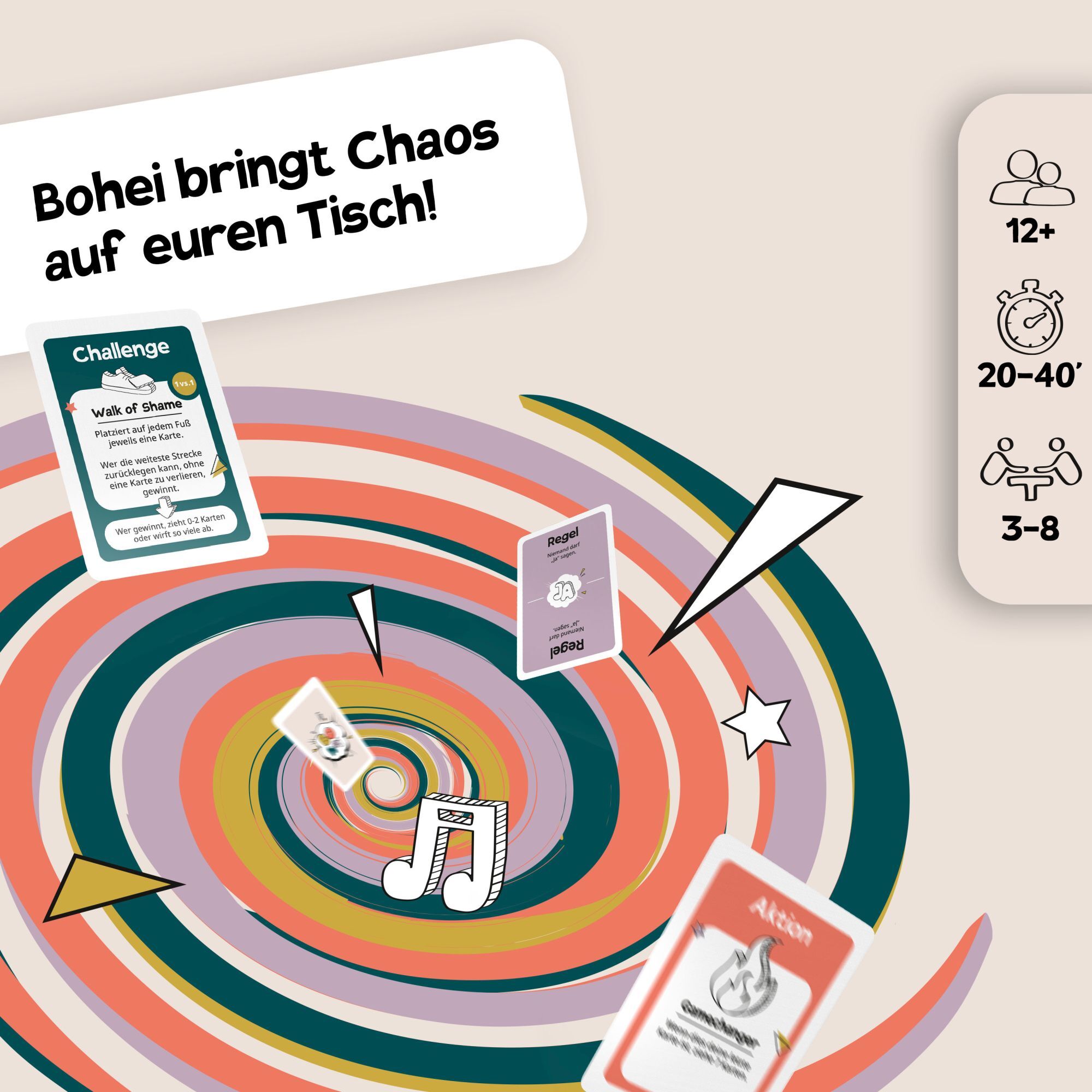 Bohei - brich das Eis & stürze ins Chaos! Bohei bringt Chaos auf den Tisch! Lass dich von den Aktionskarten überraschen, fordere die anderen Spieler zu witzigen Challenges heraus und erlebe, wie die Regelkarten von einem Moment auf d...28 Kunden haben diesen Artikel kürzlich gekauft.