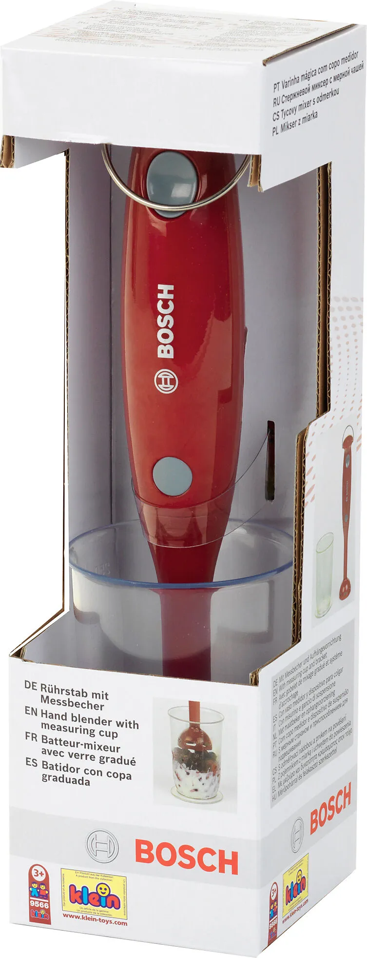 Theo Klein Bosch Spiel-Stabmixer mit Meßbecher Bosch Stabmixer, rot - Spielzeug mit kindgerechten Funktionen - Mit rotierenden Klingen-Attrappen und abnehmbarem Aufsatz - Inklusive Messbecher - Originalgetreue Nachbildung im Bosch Design - Ungefährlich - Geeig...