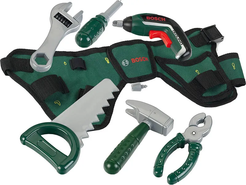 Theo Klein Bosch Werkzeuggürtel mit Ixolino II Bosch Werkzeuggürtel - Werkzeuggürtel im Bosch Design Mit Bosch Akkuschrauber Ixolino II - Batteriebetrieben, Rechts-/ Linkslauf - Licht und Sound beim Drücken des Schalters - Mit auswechselbaren Aufsätzen Werkzeu...