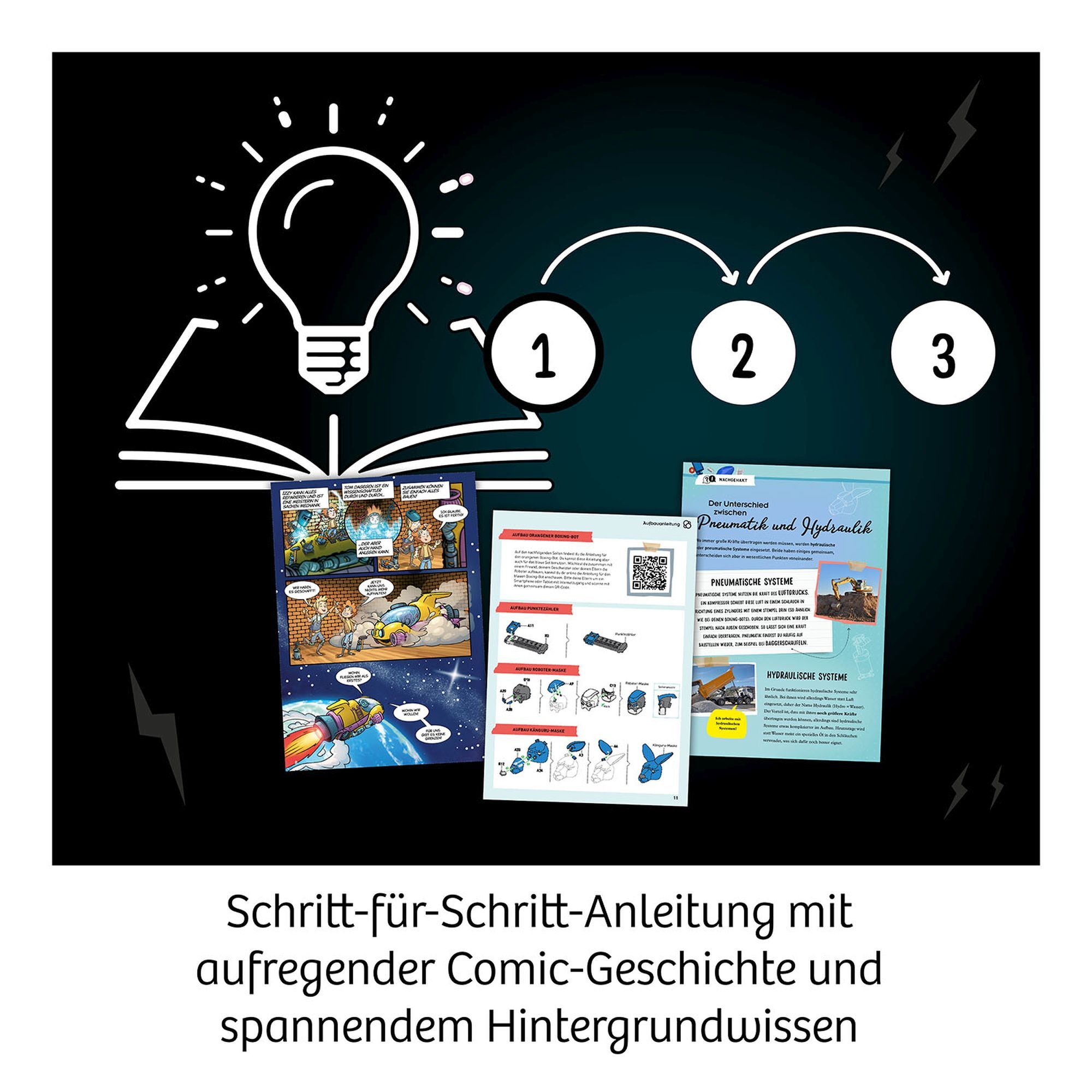 Aufgebaut, in den Ring und los! Zwei Roboter in einem Set im Duell um den Titel des Hydraulik-Champions. Mit praktischem Klick-Steck-System lassen sich die Robert kinderleicht aufbauen und konfigurieren ganz ohne Schrauben oder Batterien! Inhalt: Bausatz für 2...