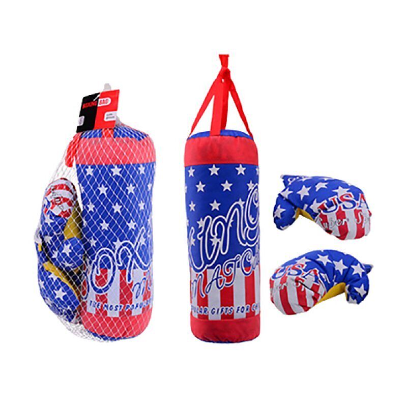 Boxsack für Kinder 3-teilig. Boxsack mit zwei Handschuhen.
