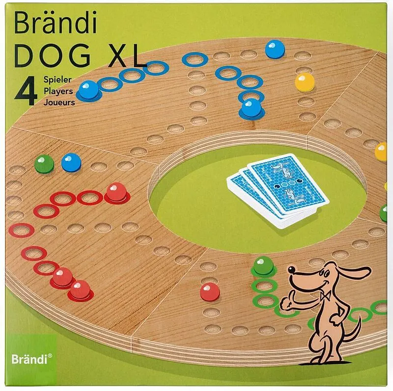 Das erfolgreiche Brändi Dog Spiel gibt es auch in der XL Version. Das Spielbrett mit dem edlen Kirschholz-Design ist optisch eine Augenweide und passt in jedes Wohnzimmer. Die extra grossen Murmeln garantieren doppelten Spielspass. Mit einem raffinierten Magne...