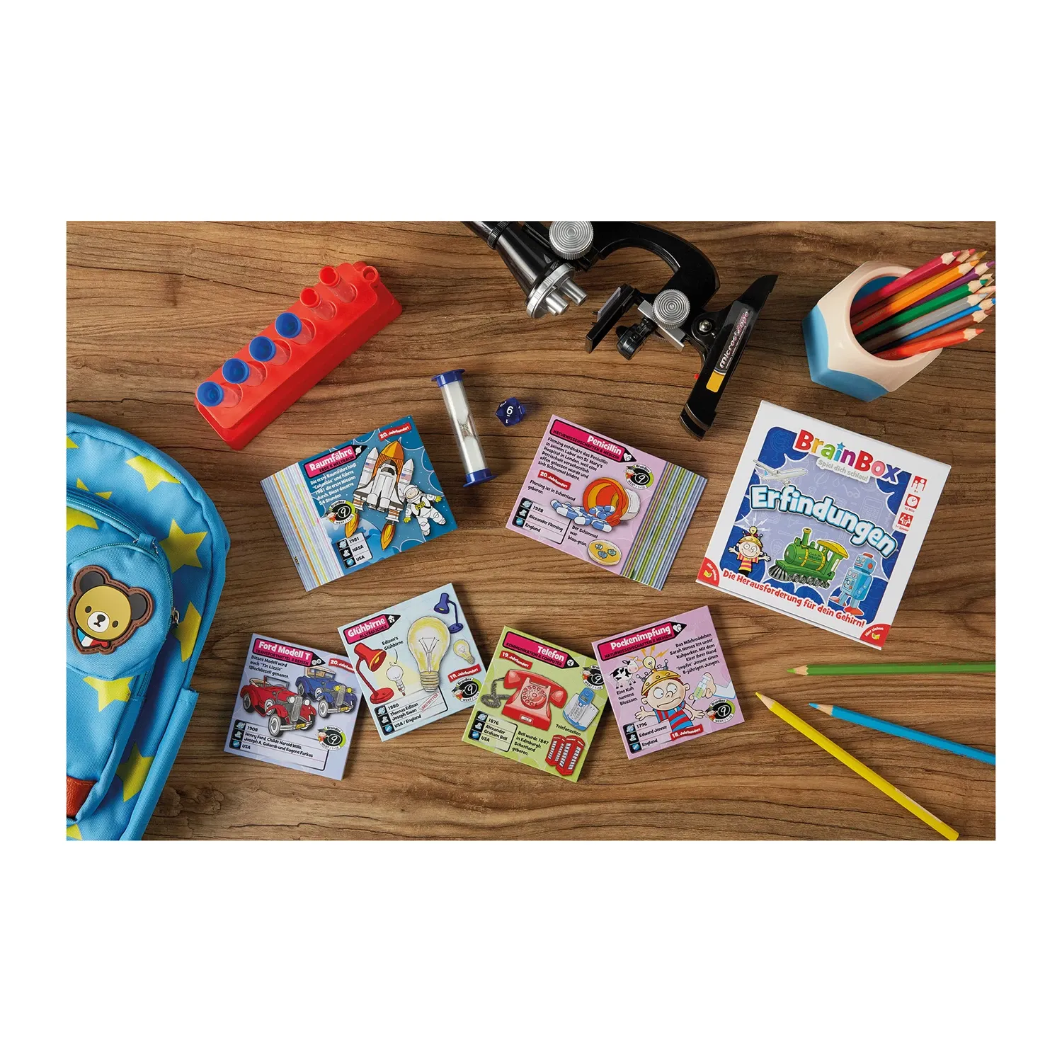 Diese BrainBox wurde in Zusammenarbeit mit dem "Science Museum" in London entwickelt. Wann wurde die Glühbirne erfunden? Warum gibt es Teebeutel? Wer hat das Telefon erfunden? Jede Karte gibt Auskunft über die Erfindung selber, den Erfinder, den Zeitpunkt sowi...