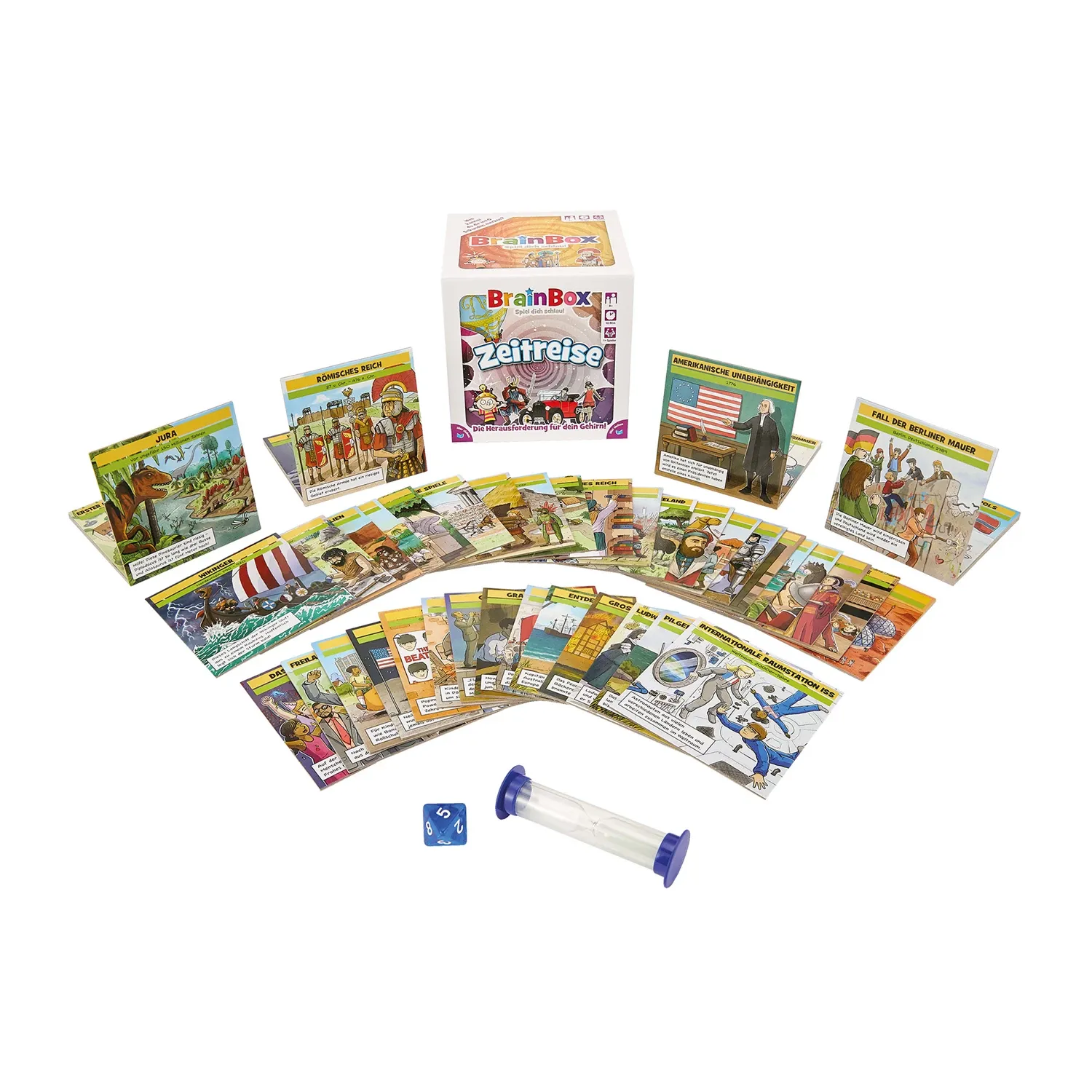 Spiel dich schlau! Die Herausforderung fürs Gehirn! Die "Zeitreise"-Box bietet kurzweiliges Edutainment mit spannenden Fakten von der Steinzeit bis zum Fall der Berliner Mauer und vom Reich der Azteken bis zum ersten Flug mit einem Flugzeug Das Gedächtnisspiel...