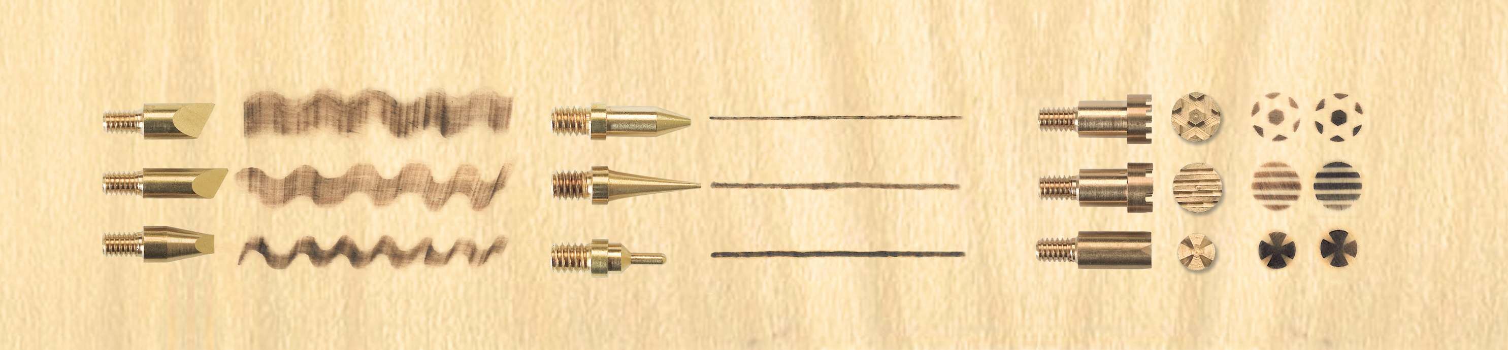 Brandmalkolben mit 9 Aufsätzen Euro Stecker 230V/30W