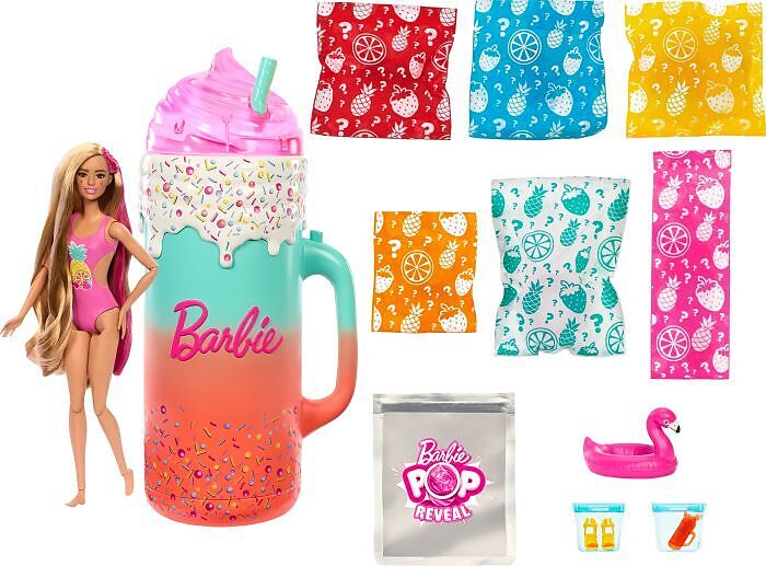 Barbie Pop! Reveal Fruit Series Giftset - Tropical Smoothie Das Barbie Pop Reveal Rise & Surprise Geschenkset bestehend aus Puppe und Zubehör sorgt für knallbunten Spielspaß! Kinder können 15 Überraschungen entdecken, darunter eine parfümierte Barbie-Puppe mit...