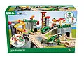 BRIO Eisenbahn-Action auf fünf Ebenen! Der Aufzug bringt die beladenen Waggons auf den höchsten Punkt des Bergmassivs. Hier startet die rasante Fahrt bergab: Über die Kurvenrampen gelangt die wertvolle Fracht in einem Rutsch bis ins Tal, wo LKW und Helikopter ...
