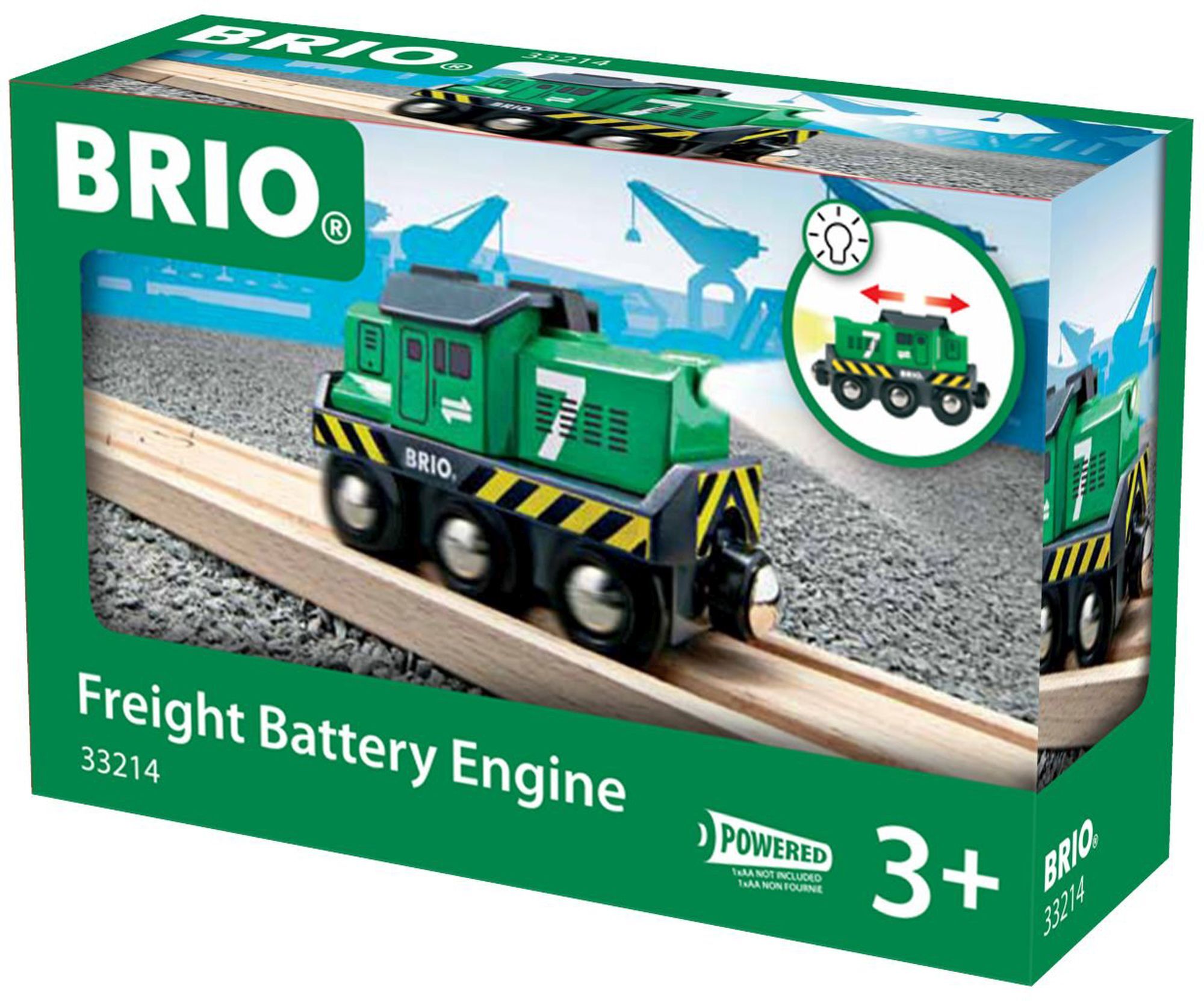 BRIO World 33214 Batterie-Frachtlok - Grüne Batterie-Lok mit Frontscheinwerfern - Empfohlen ab 3 Jahren Der Scheinwerfer dieser starken Lok ist auch auf Entfernungen zu sehen. Drück einfach auf die Knöpfe und Du kannst anhalten, vorwärts oder rückwärts fahren....