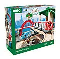 Das große Reisezug Set bringt die Fahrgäste von einem Zug zum anderen. Die blaue Linie wird von einer Batterielok zur modernen Haltestelle gezogen. Dort können die Passagiere in die rote Linie umsteigen. Vom Untergeschoß gelangt der Fahrgast mithilfe des mecha...