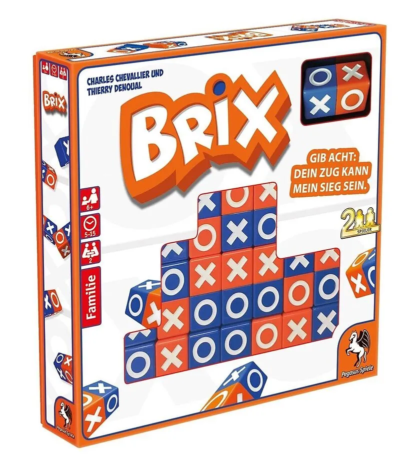 Niemand hat die Absicht, eine Mauer zu errichten - außer bei Brix! Aus bunten Steinen erschaffen die Spieler eine Mini-Mauer voller X und O, dabei spielt jeder mit seiner eigenen Farbe oder seinem eigenen Symbol. Das Gemeine an der Sache: Mit jedem Stein platz...