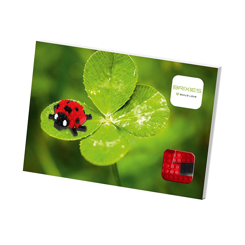 BRIXIES 220019 - Postkarte Marienkäfer, 3D Konstruktionsbausatz aus Ministeinen, 49 Teile