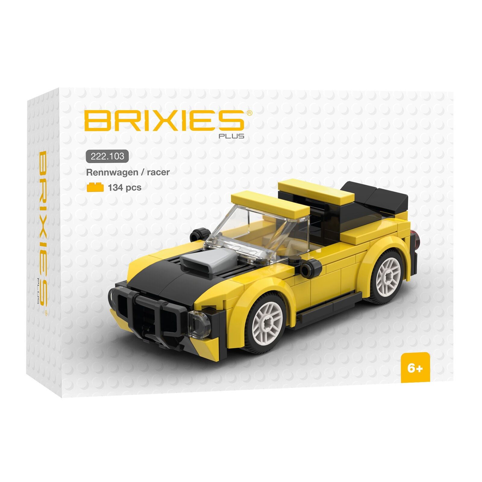 BRIXIES 222103 - Mini Rennwagen gelb, 3D Konstruktionsbausatz, ca. 134 Teile