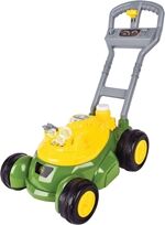 Schiebe den Bubble-Rasenmäher, um Seifenblasen zu erzeugen! Es sind keine Batterien erforderlich, und das mechanische Getriebe klingt wie ein echter Rasenmäher. Schnelle und einfache Montage. Enthält 120-ml-Seifenblasenlauge.
