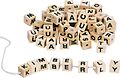 Bastel dir deine eigene Kette, ein Armband mit deinem Namen oder Namen deiner Freunde, indem du die einzelnen Buchstabenwürfel auf einen Teil der Schnur auffädelst.
