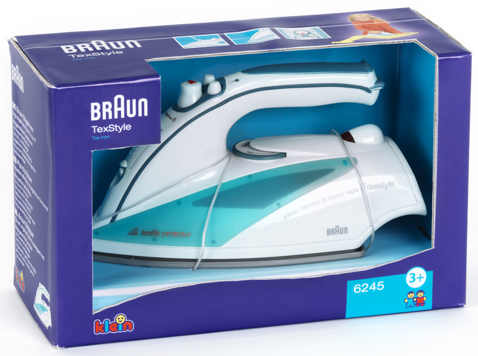 Mit Wassereinfüllmöglichkeit, Wassersprühfunktion und LED Leutanzeige. Ungefährlich, da das Bügeleisen nicht erhitzt wird. Originalgetreue Nachbildung im Braun Design.