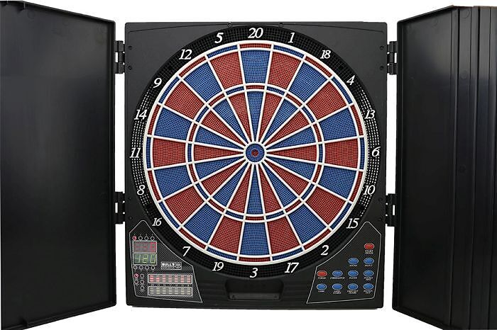 BULL'S E-Dart Cabinet Lightning RB-Sound Bull's Lightning, elektronische Dartscheibe mit Zweiloch Double und Triple Segmenten im Kabinett, mit Netztteil, LED Displays, 6 Darts und 12 Ersatzspitzen sind im Lieferumfang enthalten. Bis 8 Spieler, 28 Spiele, über ...