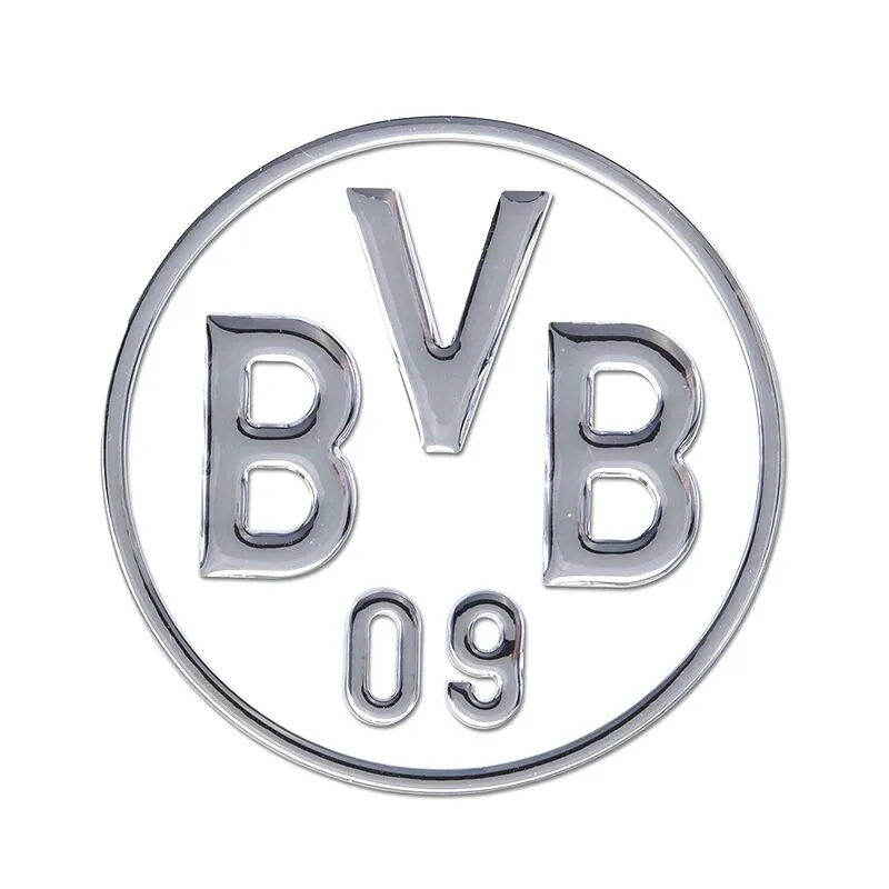 Toller Borussia Dortmund Aufkleber in silber in einem Durchmesser von 8 cm. Der Aufkleber aus anpassungsfähigem Kunstharz wird von den erhabenen Konturen des BVB-Emblems gebildet.