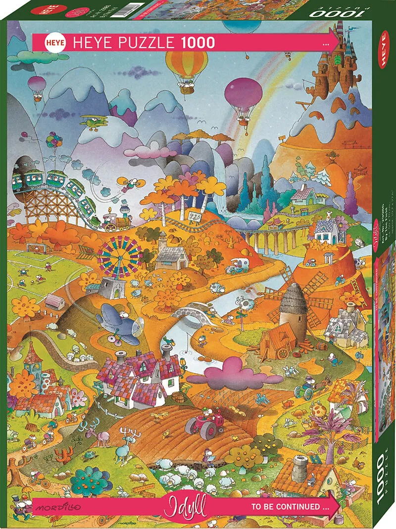 "So schön, diese Wiesen und Felder im ""Idyll"" von Mordillo! Wer wissen will, wie es um den See rum so zugeht, legt rechts einfach das zweite Puzzle der Mini-Serie dran! Gelegte Grösse: 50x70cm"