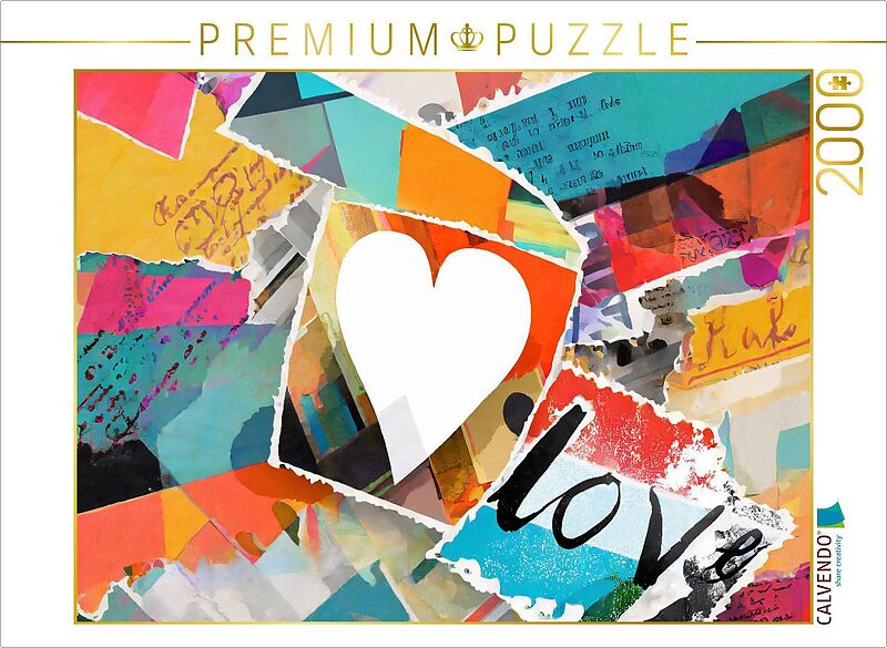 CALVENDO Puzzle Abstrakt buntes Design mit Herz und Text Love | 2000 Teile Lege-Größe 90x67cm Foto-Puzzle für glückliche Stunden