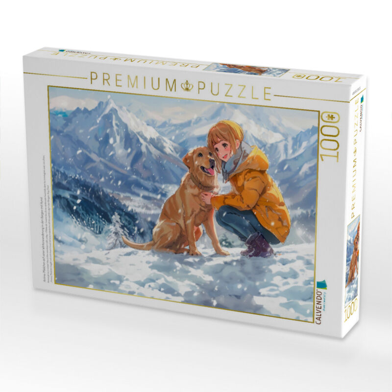 CALVENDO Puzzle Anime-Mädchen auf einer Winterwanderung in den Bergen mit Hund. | 1000 Teile Lege-Größe 64x48cm Foto-Puzzle für glückliche Stunden