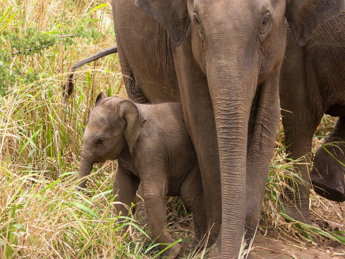 Obwohl es immer wieder Nachwuchs bei den Elefanten gibt, ist es sehr selten möglich, einen so jungen Baby-Elefanten in freier Natur zu sehen. Da diese Elefanten in Sri Lanka Jahr für Jahr weniger werden, gehören Fotos wie diese bald der Vergangenheit an