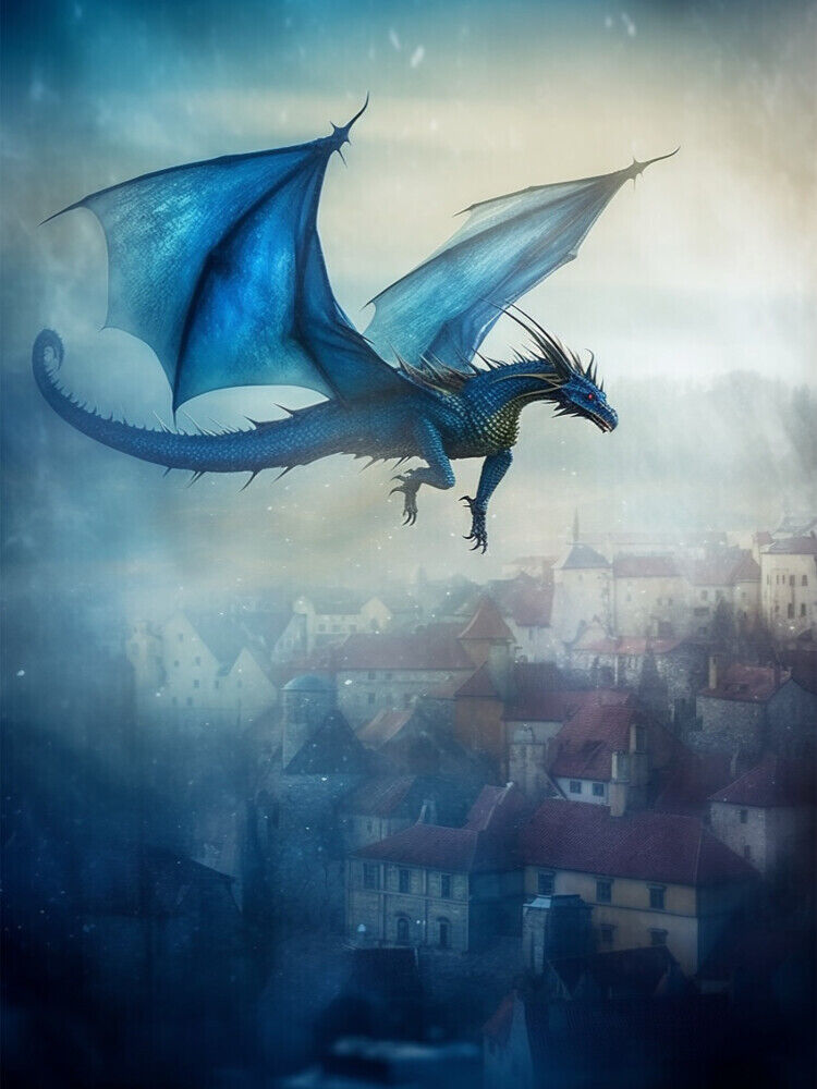 Ein Zeitsprung in die Fantasie des Mittelalters lässt die faszinierenden zauberhaften Wesen der Lüfte wieder auferleben. Lassen Sie sich von dem KI-generierten einzigartigen Gemälde der Fantasie-Drachen verzaubern und tauchen Sie ein in eine Welt voller Abente...