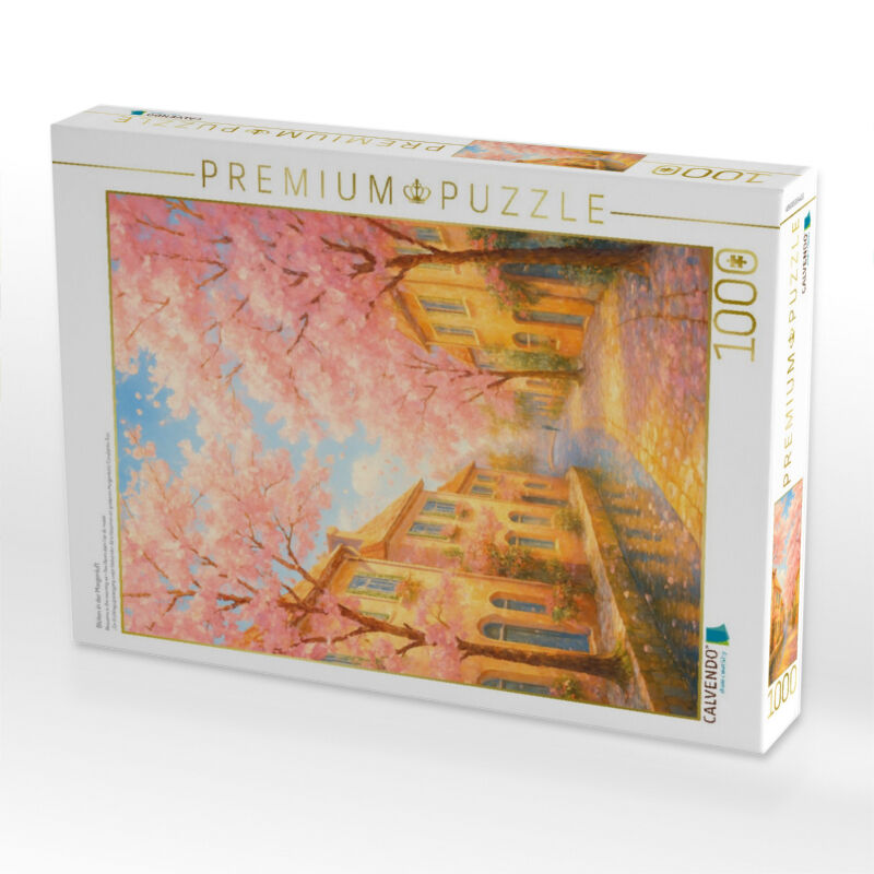 Dieses Bild fängt die Magie eines frühen Frühlingsmorgens ein:Blühende Kirschbäume rahmen eine ruhige Gasse, während zartes Licht auf die Pflastersteine fällt. Die Szene strahlt Leichtigkeit, Romantik und Harmonie aus - ideal für Puzzle-Liebhaberinnen, die poe...