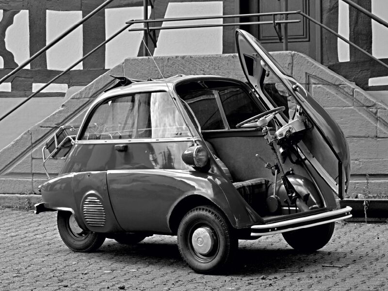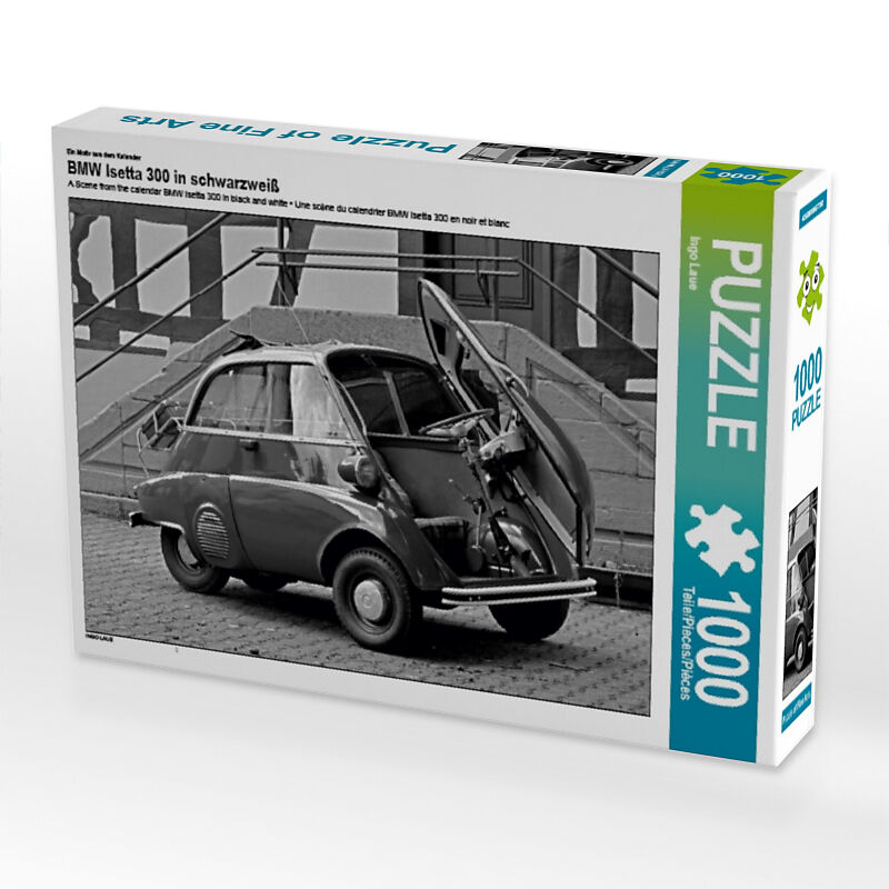 Ein Motiv aus dem Kalender BMW Isetta 300 in schwarzweiß / Ingo Laue: Auch Heute, nach über 60 Jahren hat dieses kleine Gefährt seinen Reiz nicht verloren. Der Westentaschen - BMW ist Publikumsmagnet auf unseren Straßen. Winkende Menschen begleiten die Isetta ...