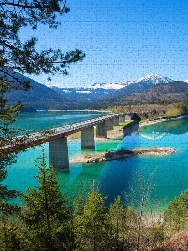 CALVENDO Puzzle Brücke über den Sylvensteinsee | 1000 Teile Lege-Größe 64x48cm Foto-Puzzle für glückliche Stunden