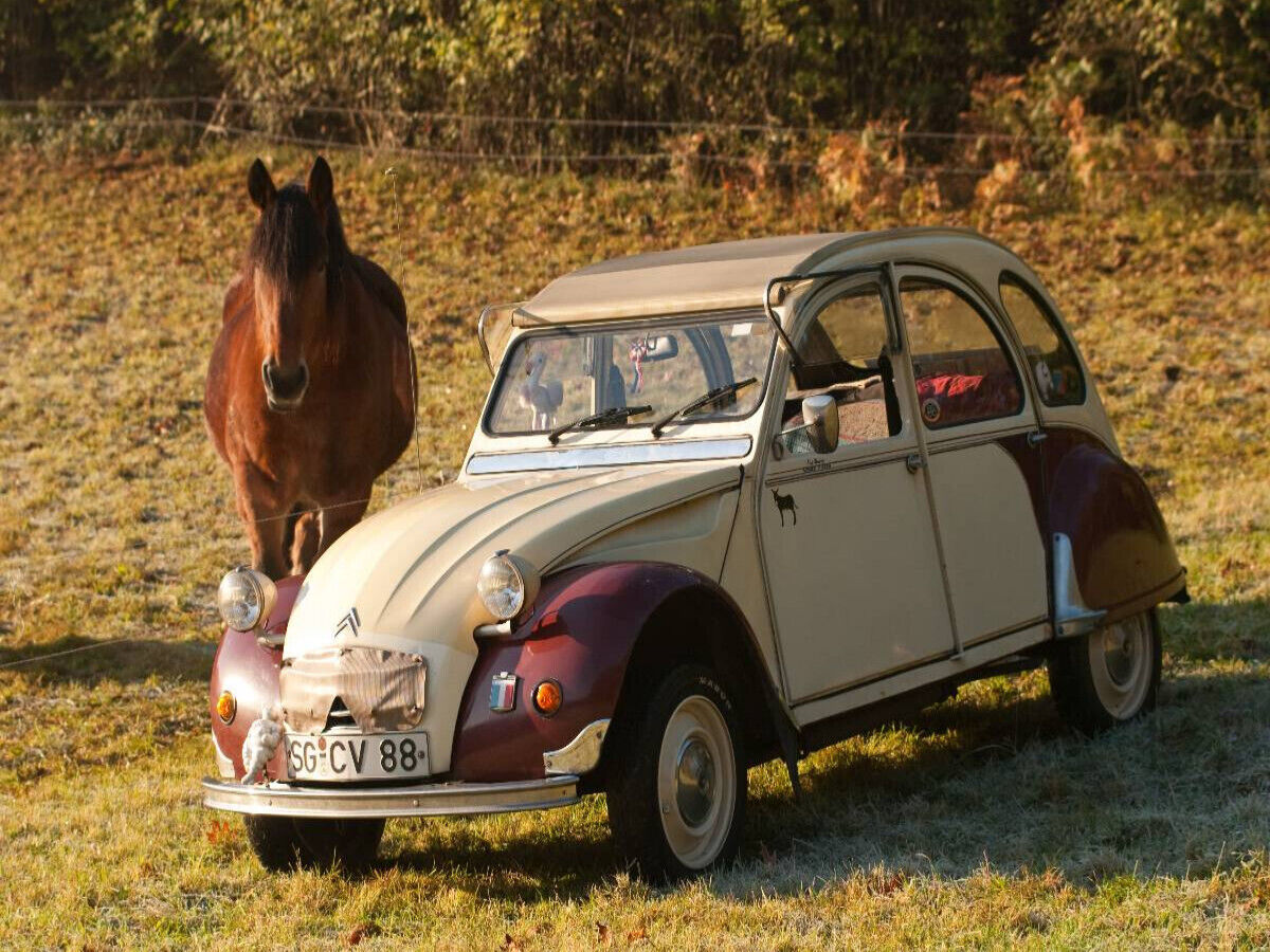 CALVENDO Puzzle Citroën 2 CV Dolly mit Pferd | 1000 Teile Lege-Größe 64x48cm Foto-Puzzle für glückliche Stunden