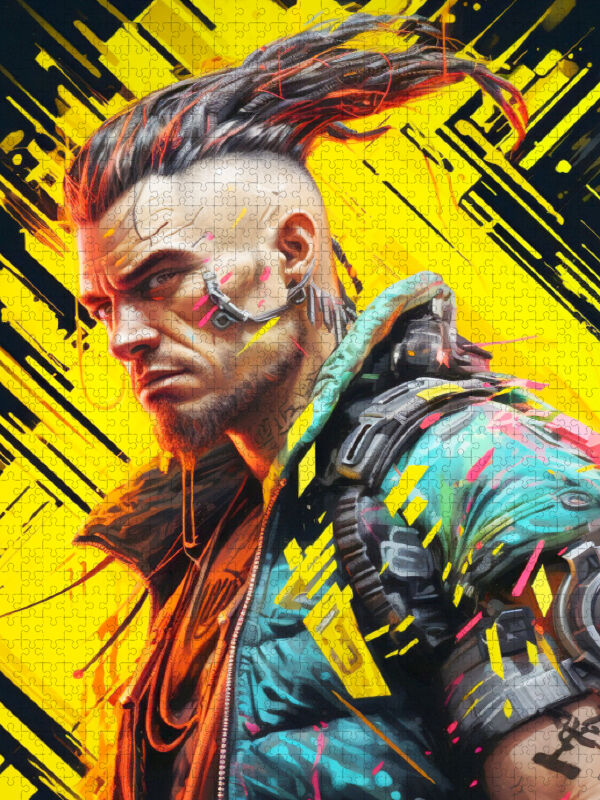 CALVENDO Puzzle Cyberpunk Heroe Futuristische Fusion von Technik und Kunst | 1000 Teile Lege-Größe 64x48cm Foto-Puzzle für glückliche Stunden