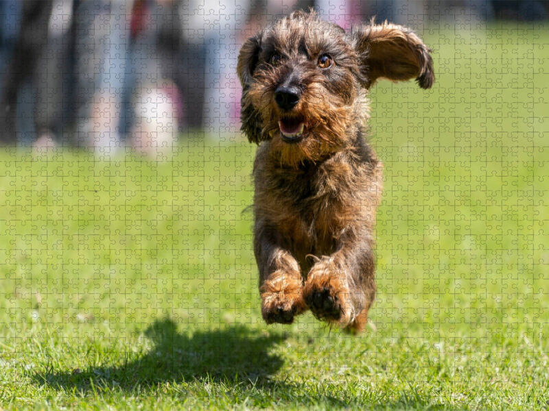 CALVENDO Puzzle Dackel im Flug | 1000 Teile Lege-Größe 64x48cm Foto-Puzzle für glückliche Stunden
