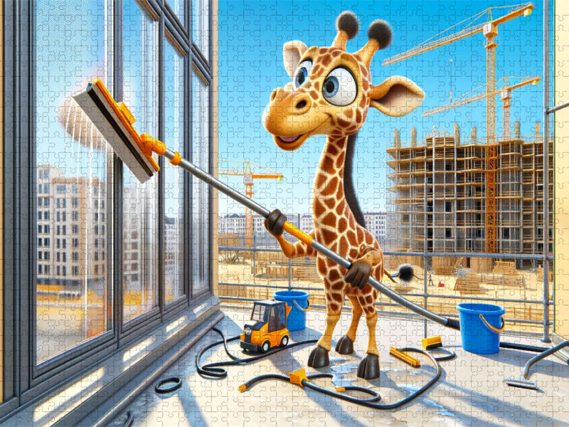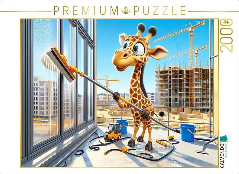 CALVENDO Puzzle Die geschickte Giraffe als Fensterputzer: Hoch hinaus für klare Sicht | 2000 Teile Lege-Größe 90x67cm Foto-Puzzle für glückliche Stunden