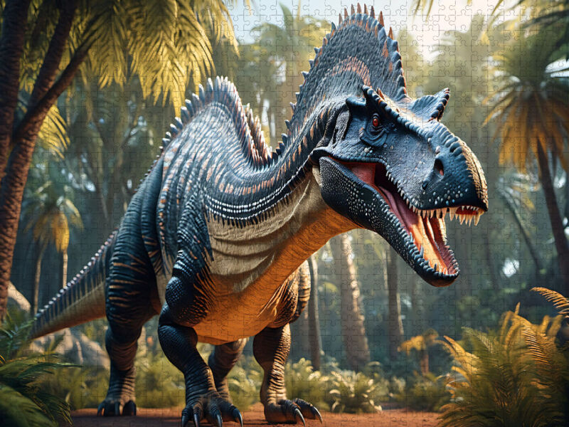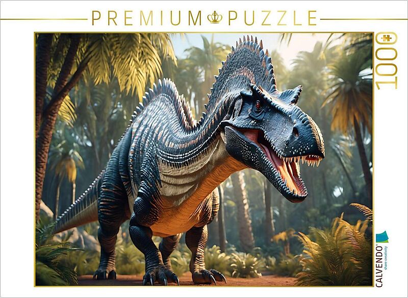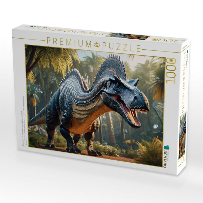 CALVENDO Puzzle Dinosaurier - ein Spinosaurus in urzeitlicher Landschaft | 1000 Teile Lege-Größe 64x48cm Foto-Puzzle für glückliche Stunden