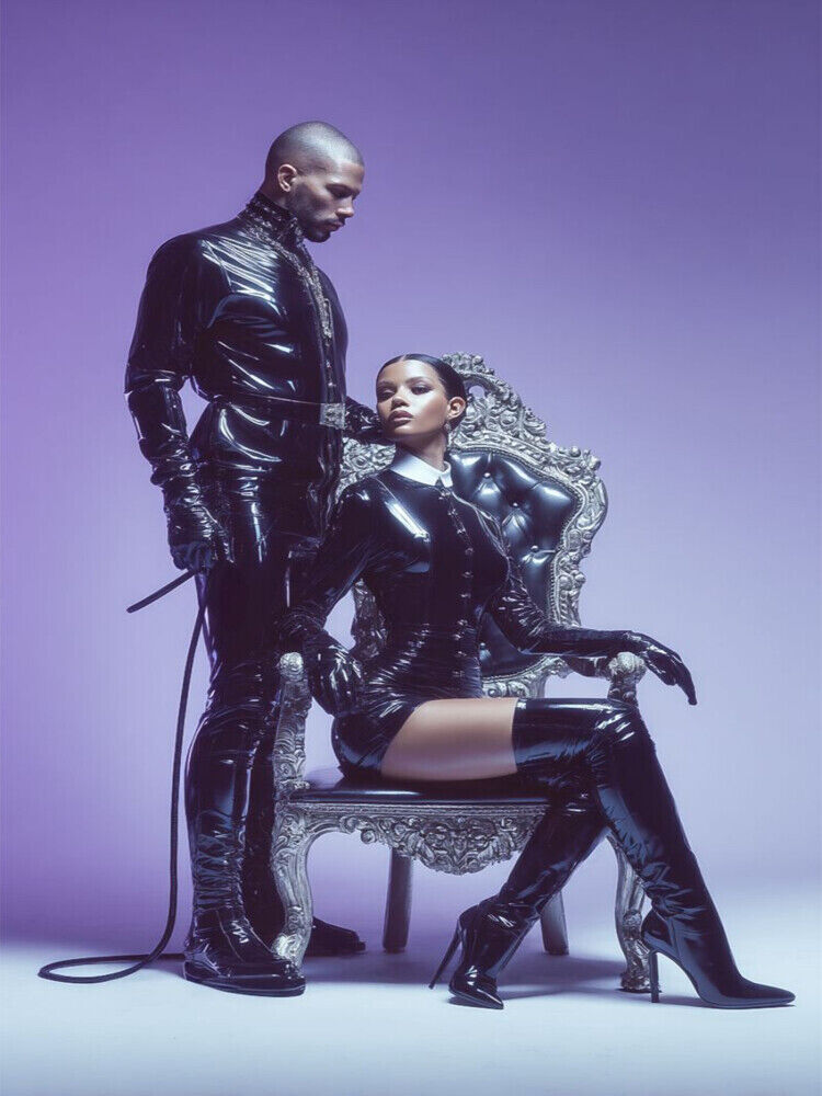 Eine kunstvoll inszenierte Illustration voller Spannung, Dominanz und Hingabe, festgehalten in ästhetischer Perfektion. Lack, Latex und Machtspiele treffen auf provokative Rollenbilder und visuelle Stärke. Ideal für Liebhaberinnen von Fetisch, Fashion und auße...