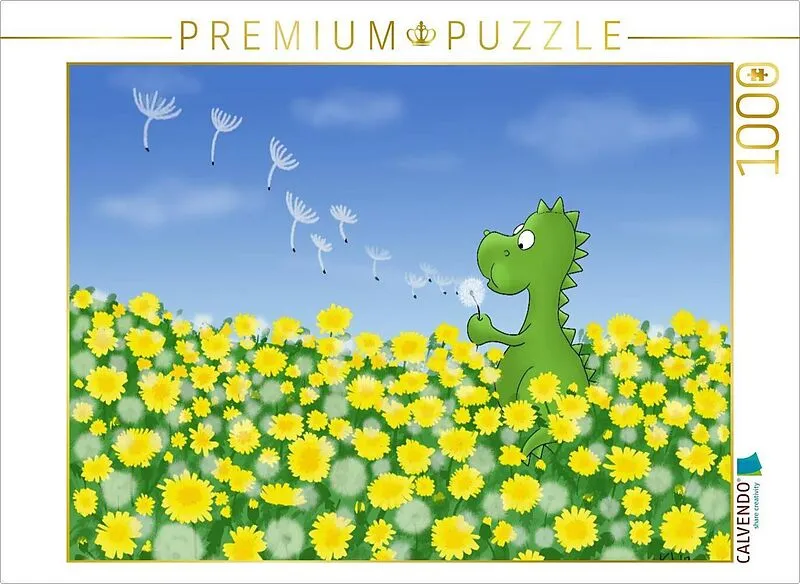 CALVENDO Puzzle Drache mit Pusteblume | 1000 Teile Lege-Größe 64x48cm Foto-Puzzle für glückliche Stunden
