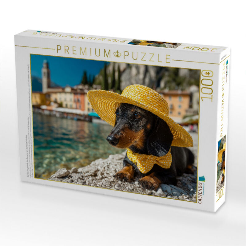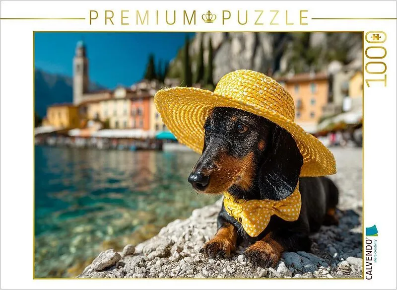 Dieses einzigartige Motiv zeigt einen stilvollen Dackel mit Sonnenhut und Halstuch, entspannt am malerischen Ufer des Gardasees in Italien. Perfekt für alle, die Hunde lieben und vom nächsten Italienurlaub träumen. Ob als originelles Geschenk für Hundebesitzer...