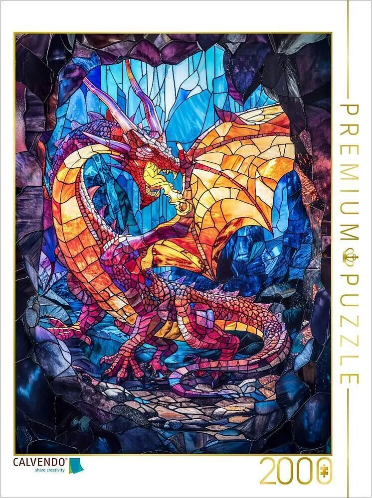 CALVENDO Puzzle Ein mächtiger Drache ruht tief in seiner Höhle | 2000 Teile Lege-Größe 90x67cm Foto-Puzzle für glückliche Stunden