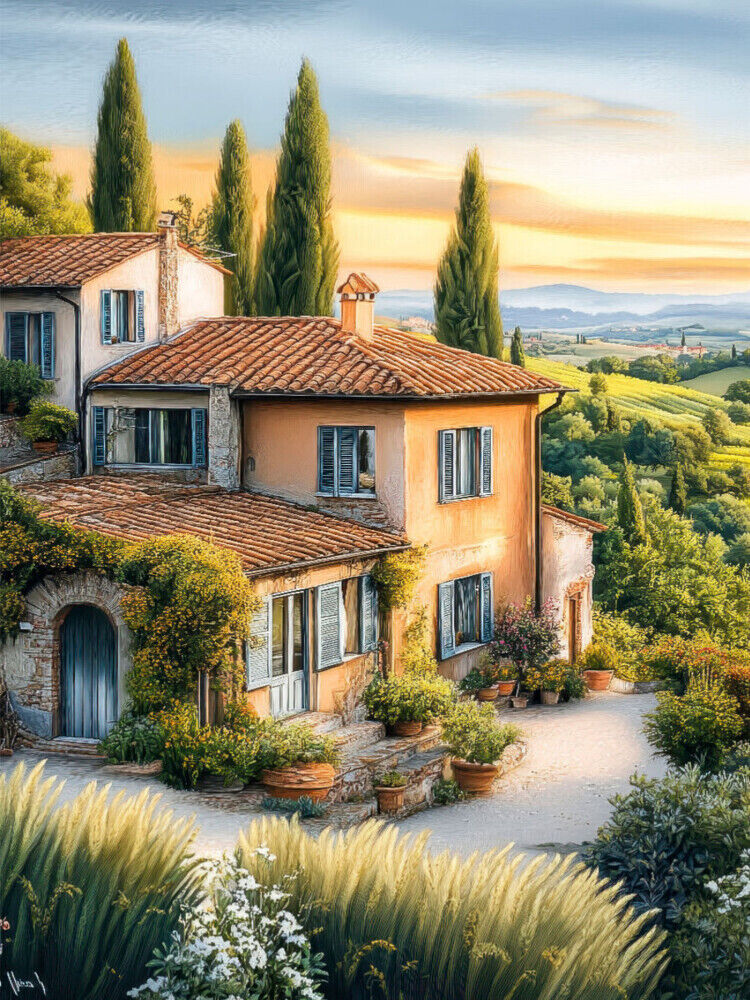 Sanfte Hügel, goldene Felder, endlose Reihen von Zypressen - die Toskana ist eine Landschaft wie aus einem Gemälde. Ob ein kleines kleines toskanisches Dorf mit seinen charmanten Steinhäusern oder eine malerische Dorfkirche, eingebettet in mediterrane Landscha...