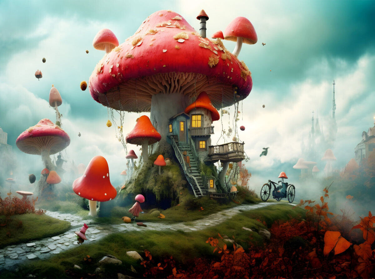 Wundervolle Welt der fabelhaften Fantasiewelten, eine Reise nicht nur für Kinder sondern auch für Erwachsene. Wer wohl in diesen Fliegenpilzhäusern wohnen wird?