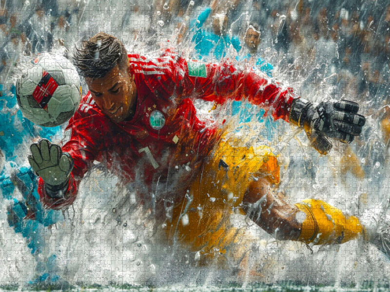 Lieben Sie Fußball? Lassen Sie sich von jedem einzelnen Fußballakteur begeistern? Dann wird Sie dieses Fußball-Torwart Bild beeindrucken. Werden Sie Zeuge von schnellen Reaktionen, Zweikämpfen und beeindruckenden Leistungen. Feiern Sie die Brillanz von Torwart...