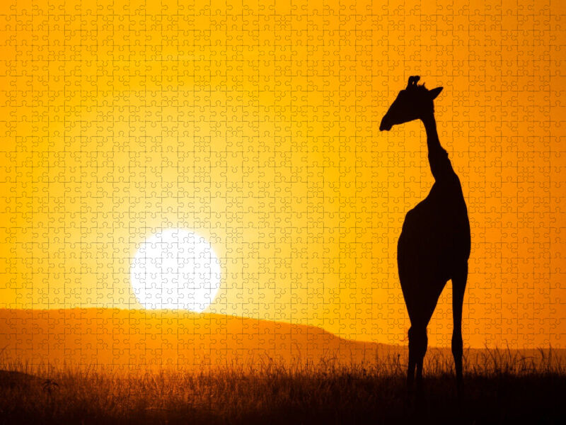 CALVENDO Puzzle Giraffe vor aufgehender Sonne | 1000 Teile Lege-Größe 64x48cm Foto-Puzzle für glückliche Stunden