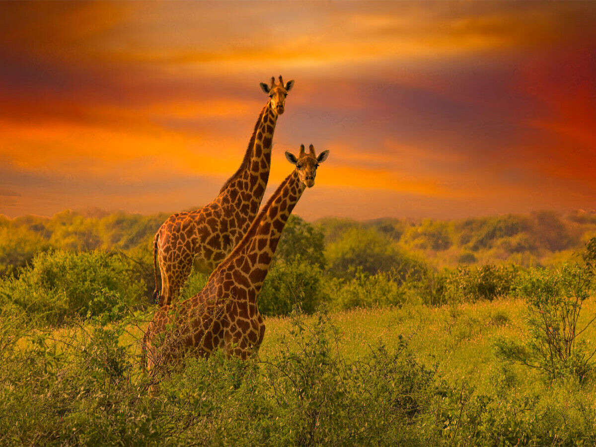 Ein Motiv aus dem Kalender "Traumhaftes Kenia" von Heinz-Peter Schwerin: Erleben sie Afrikas Tierwelt in einer Atemberaubenden Landschaft. Giraffen in der Savanne und dazu noch ein Sonnenuntergang. Immer wieder ein einmaliges Fotomotiv.