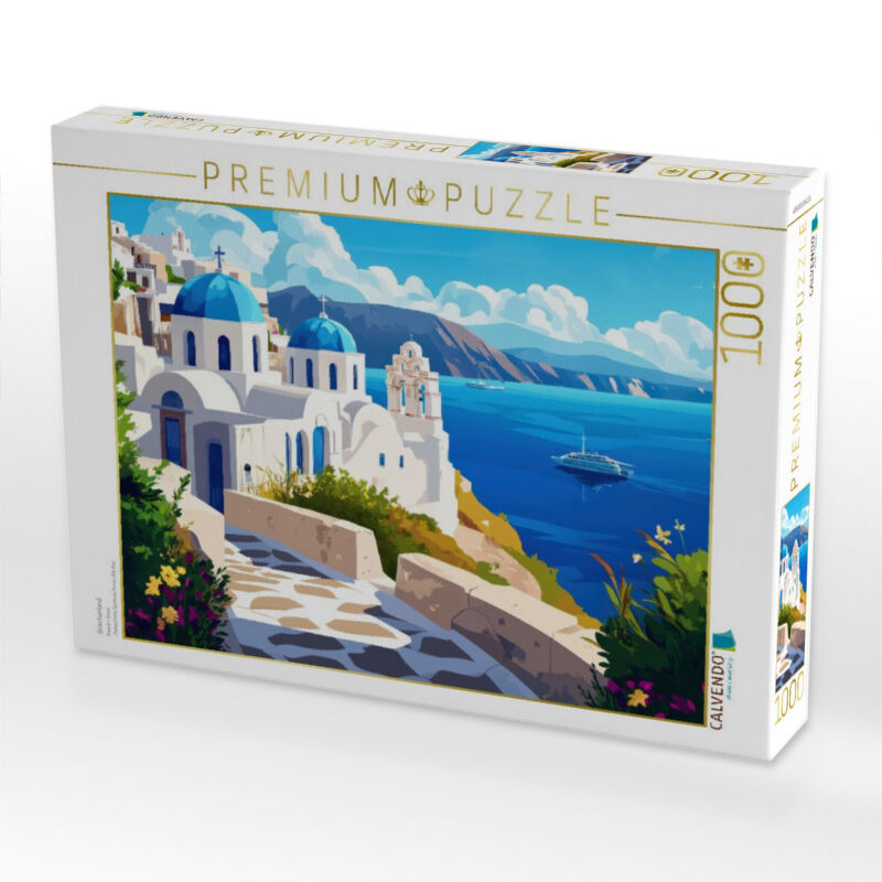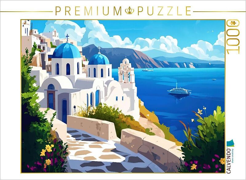 Entfliehen Sie in die strahlende Schönheit von Santorini mit unserer exquisiten, farbenfrohen Illustration, die die Essenz dieser ikonischen griechischen Insel einfängt. Ob als fesselndes Puzzle oder als beeindruckende Leinwand - dieses Kunstwerk bringt die at...