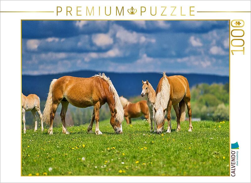 CALVENDO Puzzle Haflinger Gruppe beim genießen der frischen Luft | 1000 Teile Lege-Größe 64x48cm Foto-Puzzle für glückliche Stunden